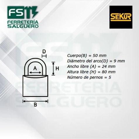 Candado Sekur Standard 50 Arco Mediano X 6 Con Maestra - Pack X 6