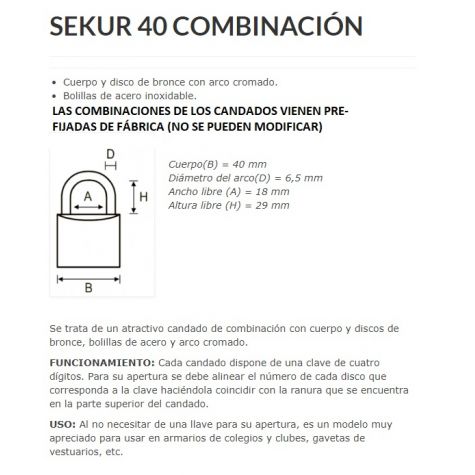 Candado Sekur Combinacion 40