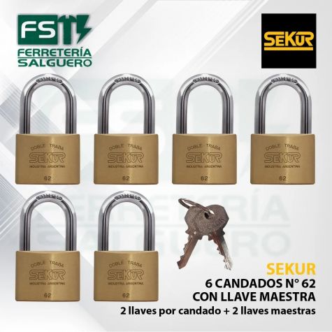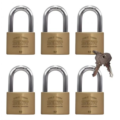 Candado Sekur Standard 62 X 6 Con Maestra - Pack X 6