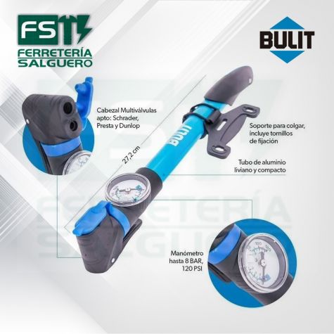 Bulit Inflador Celeste De Mano Con Manometro Inf S6 272 Ma