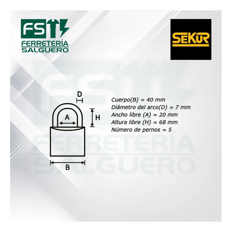 Candado Sekur Arco Mediano 40