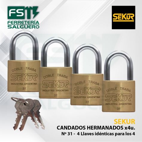 Candado Sekur Standard 31 Hermados X 4u - Pack X 4 - Pack X 4